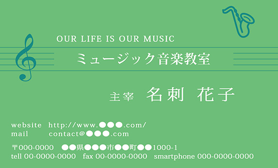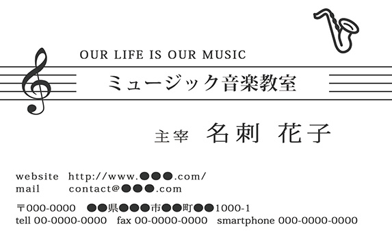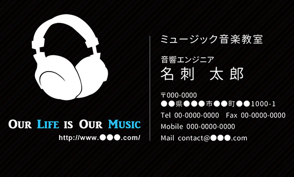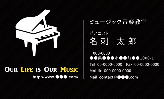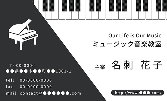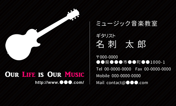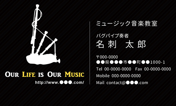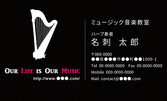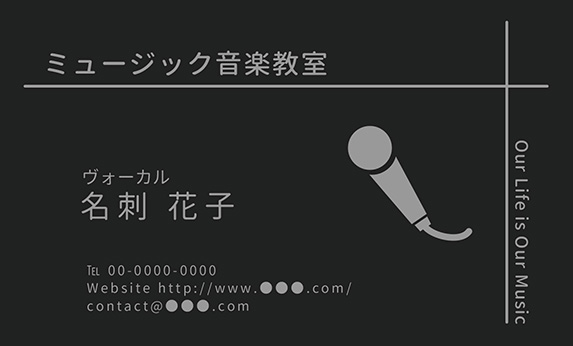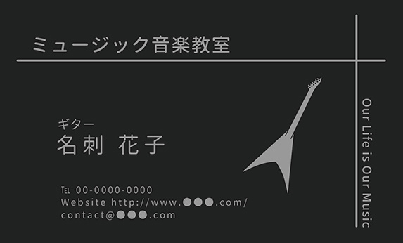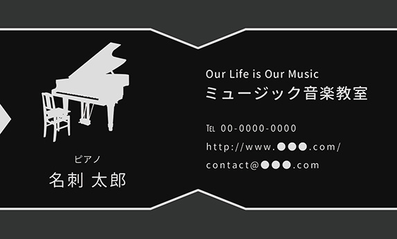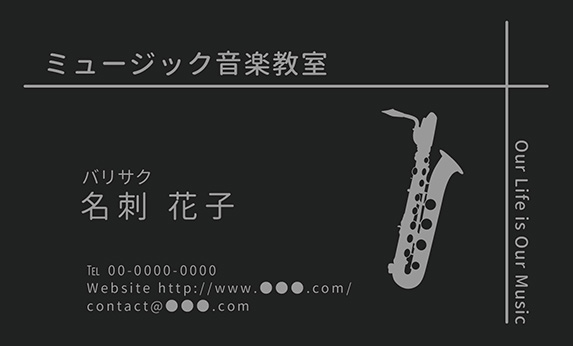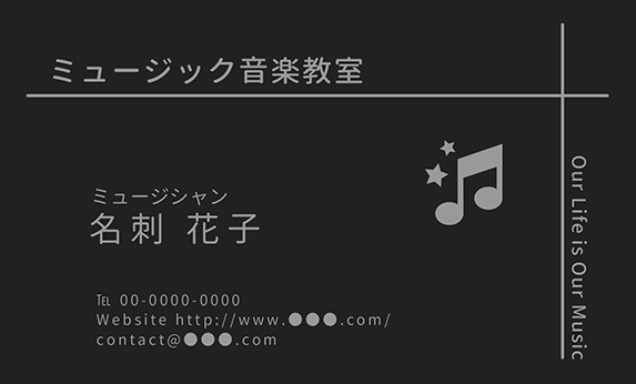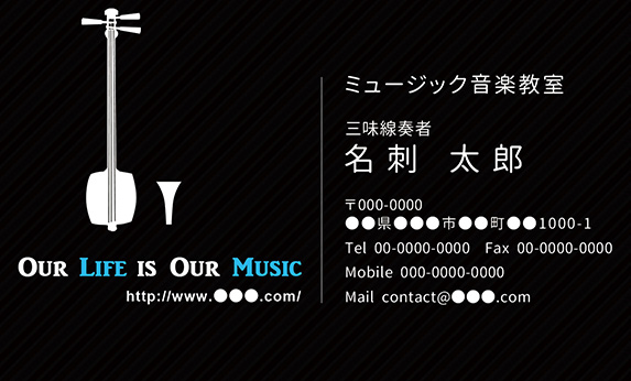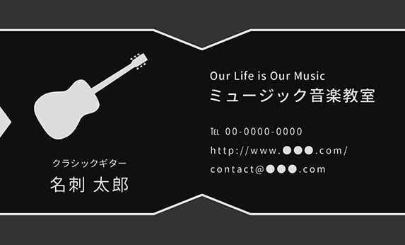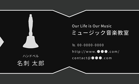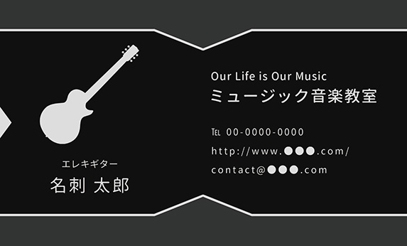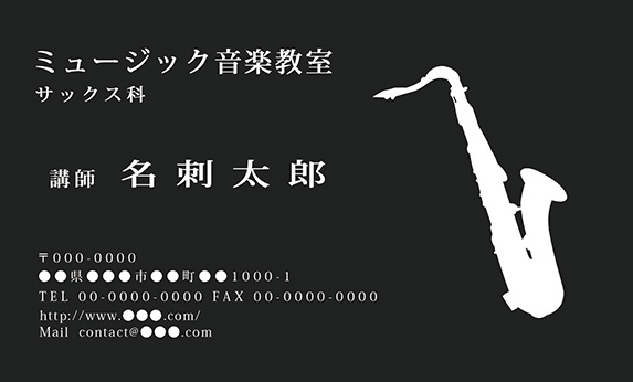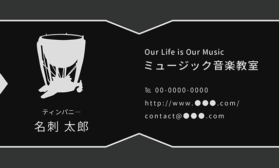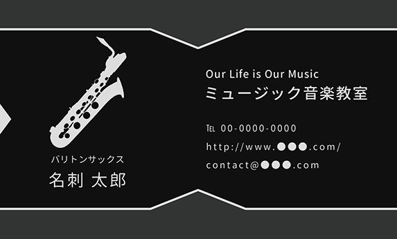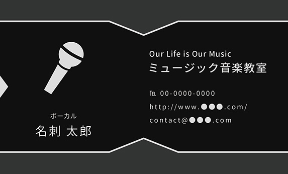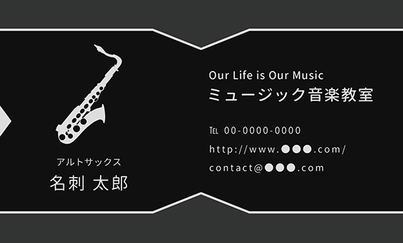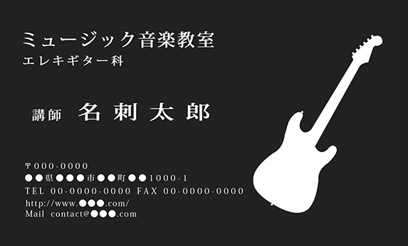 シンプルなブラックカラーに楽器のイラストがワンポイント。素敵な音楽系名刺です。