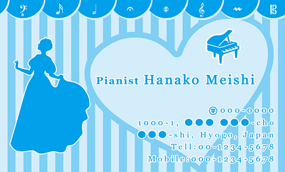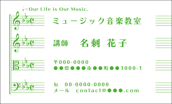 楽器のイラストと音楽デザインが人気の名刺です。マトリョミンやコントラバス、チェロなど様々な楽器のイラストがあります。