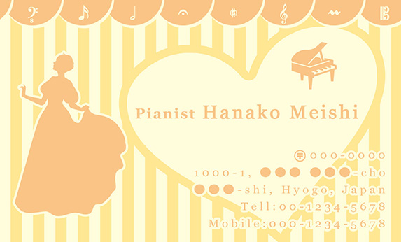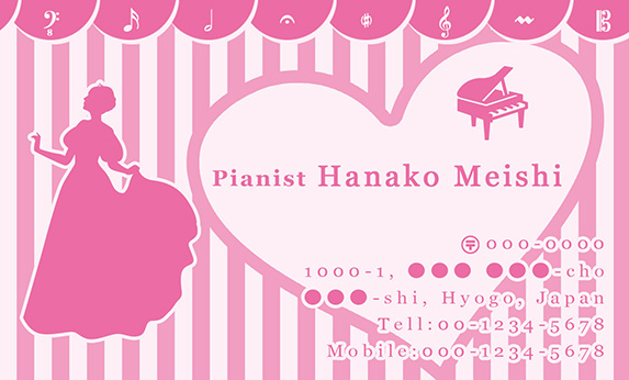 大きなハートがかわいい音楽柄キャバ嬢名刺です。
