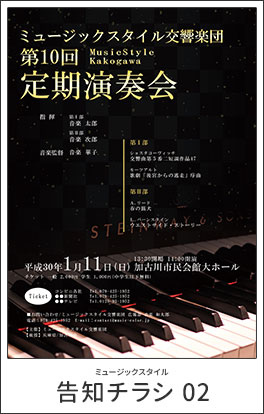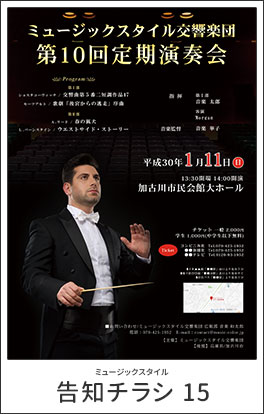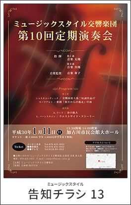 豊富なテンプレートから、簡単に演奏会、コンサートのチラシの制作が依頼できます。テンプレートに沿って制作しますので、制作のコストが大幅に抑えることができ、低価格でご提供できています。