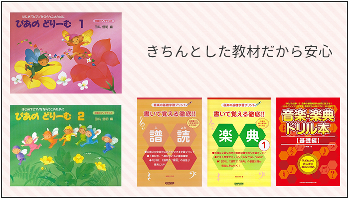 ミュージックカラー音楽教室では、しっかり上達していけるようテキストにもこだわっています。